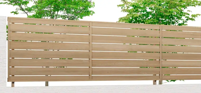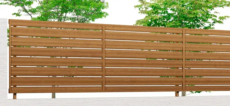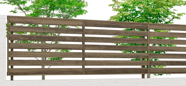 天然木のような風合いで、フレームから柱まで全て木目調で統一され、内観からも外観からも木調感を演出したい方にはおすすめしたいフェンスです。