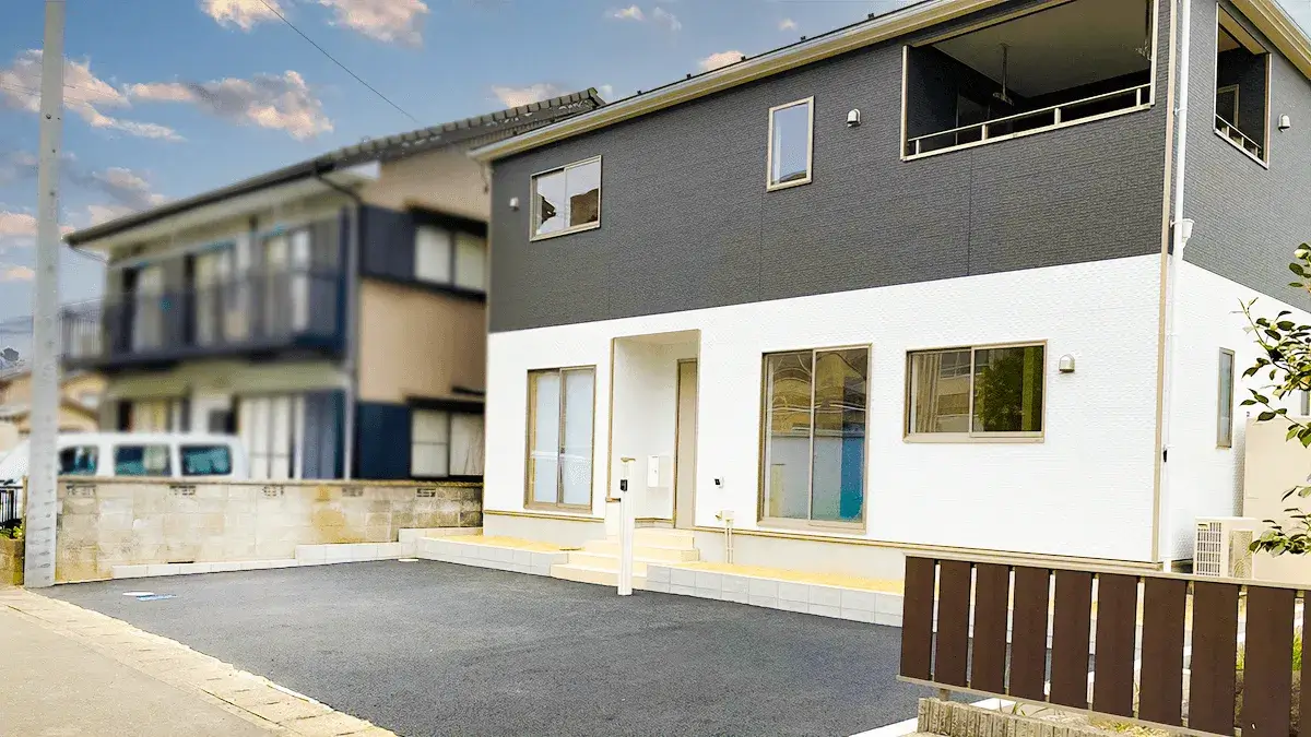 全面アスファルトでのお引渡しでしたが、クローズ外構に変更し、門・塀・フェンス等の設置のご依頼いただきました。